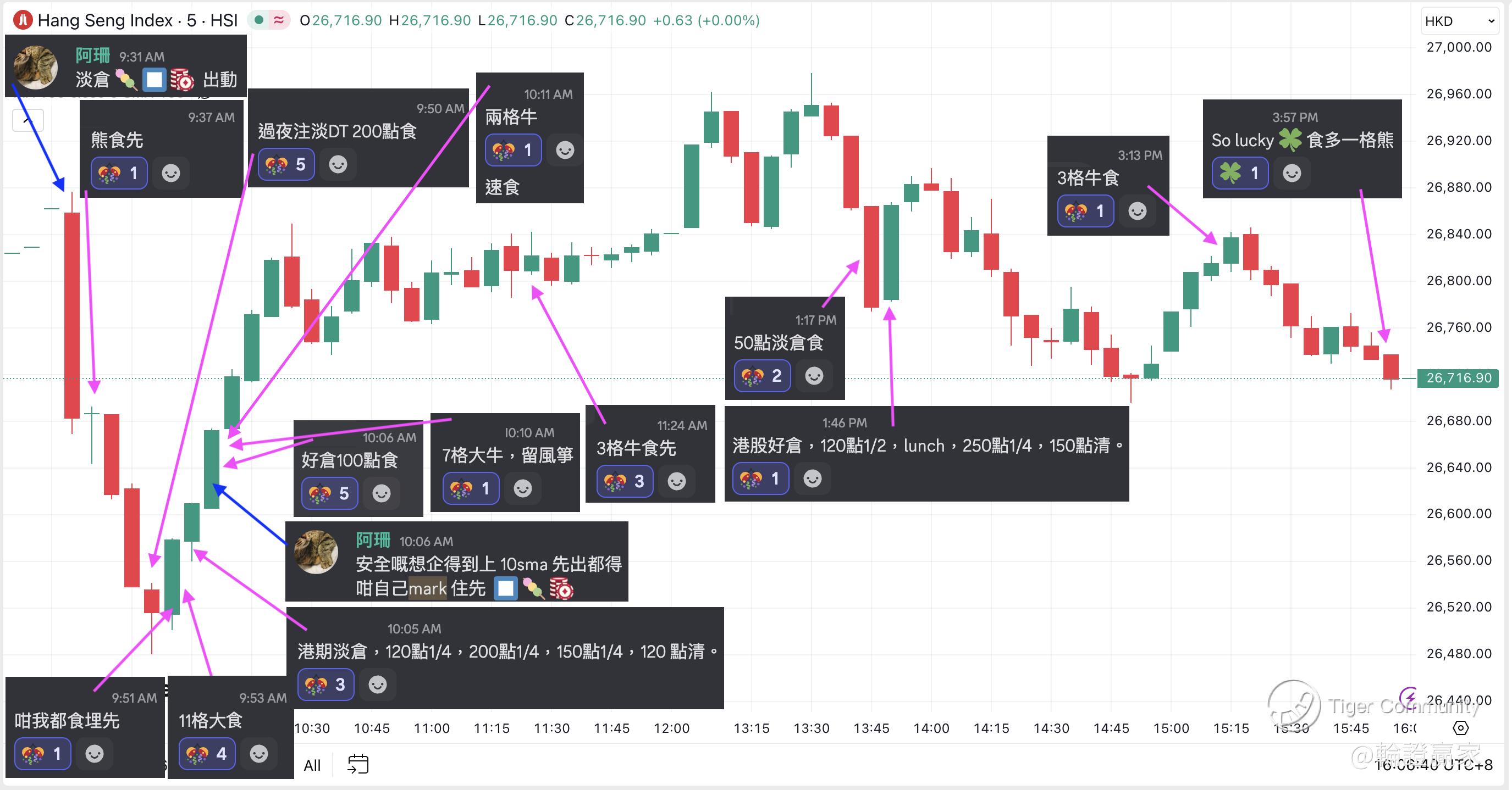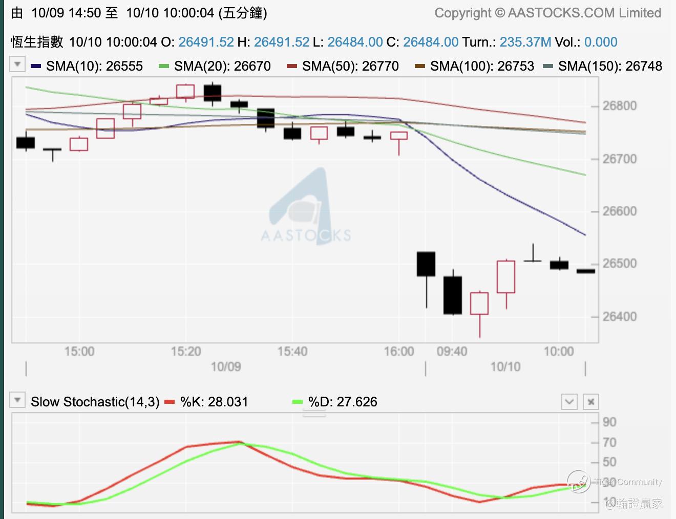 作战室都系望住呢个位,同步keep住用五分钟图嚟爬格仔,但暂时指数一落一上之后喺26500点浮沉。