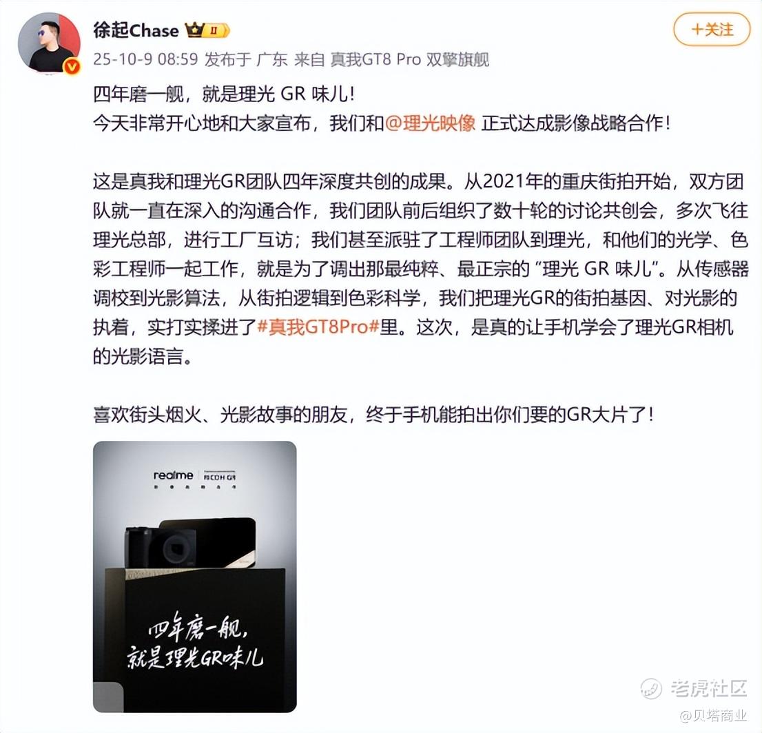 真我官方透露,和日本理光映像达成影像战略合作,甚至在过去四年里互相派了工程师到工厂,为的就是在新旗舰GT8Pro里,揉进正宗的“理光GR味儿”。