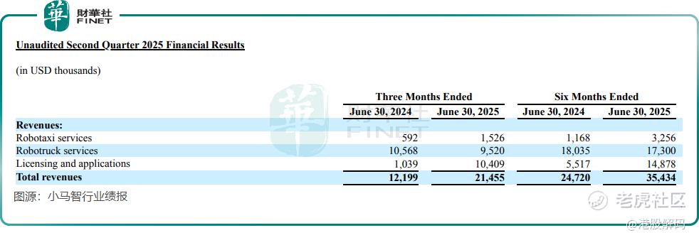 根据两家公司发布的2025年第二季度业绩,其营收均实现迅猛增长:小马智行同比增长75.9%,文远知行同比增长60.8%。随着Robotaxi服务落地提速,小马智行Robotaxi服务业务收入激增157.8%至约1090万元(单位人民币,下同),文远知行Robotaxi服务业务收入增长836.7%至4590万元。