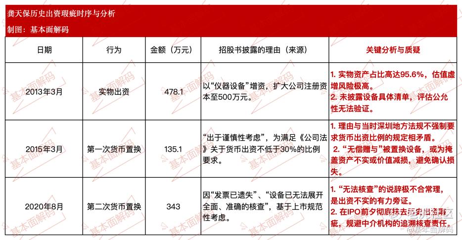 图标:龚天保历史出资或存瑕疵对比、制图:基本面解码