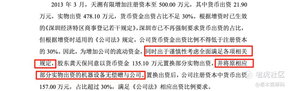 2015年首次置换的逻辑矛盾:以“审慎”为名掩盖出资不合规或资产不实的嫌疑,时隔两年,于2015年3月,龚天保以135.10万元货币资金置换了等额的实物出资。招股书给出的解释是,2013年增资时货币出资比例未达到当时《公司法》规定的30%下限,此举是“出于谨慎性考虑”并为“增加公司的流动资金”,而被置换的设备则“无偿赠与”公司。