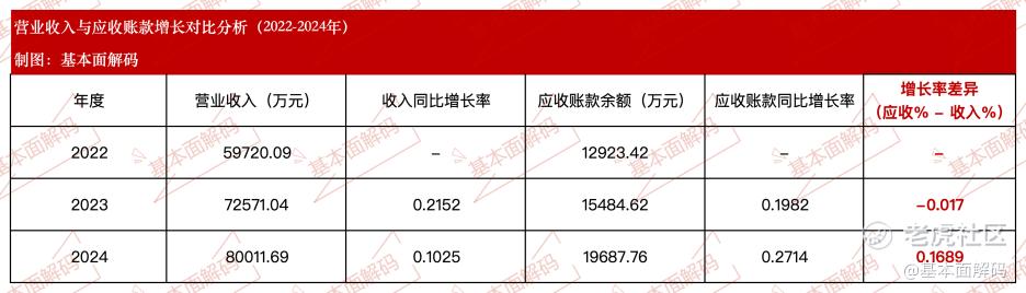 图标:营业收入与应收账款增长对比分析(2022-2024年)、制图:基本面解码