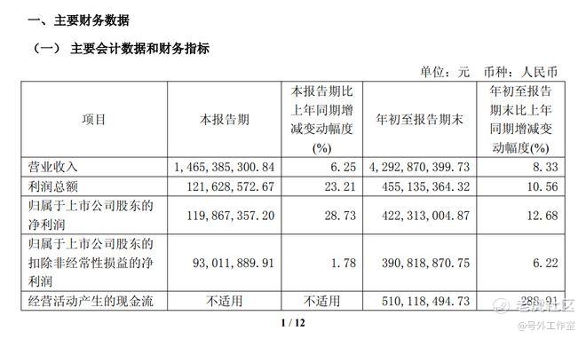 财报显示,年初至9月末,归母净利润4.22亿元,同比增长12.68%;同期非经常性损益合计3149.41万元,政府补助累计3440.99万元。