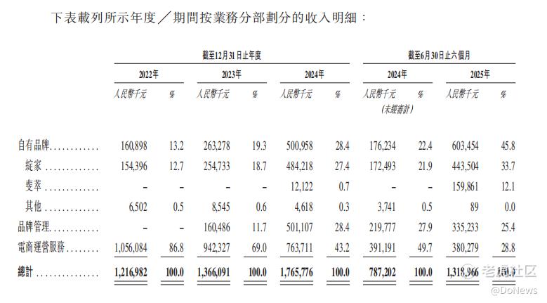 据其招股书显示,2025年上半年,其自有品牌在抖音渠道的零售额达到人民币506.7百万元,占全渠道零售额的61.5%。