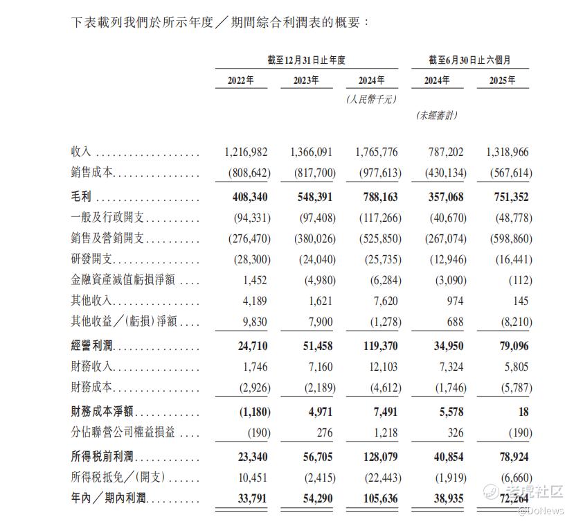 据若羽臣招股书,其在2025年上半年实现营收为13.19亿元;毛利为7.51亿元;经营利润为7910万元;期内利润为7226万元。