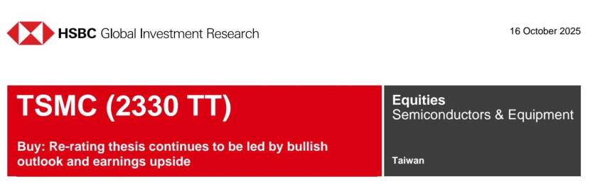 汇丰表示,只要 AI 大趋势不拐头、技术迭代不掉队,台积电的估值重估还能继续。