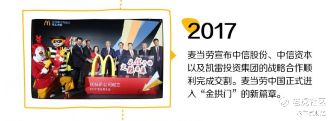 时光流转至2017年。由中信股份、中信资本及凯雷投资集团组成的联合体,正式完成了对麦当劳中国区业务的收购,肩负起在中国市场运营与发展麦当劳的重任。