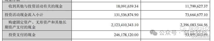 其中,“购建固定资产、无形资产和其他长期资产支付的现金”达21.23亿元,占投资总流出的89.58%,但这些投入的具体项目、预期收益与回收周期,财报均未详细披露。