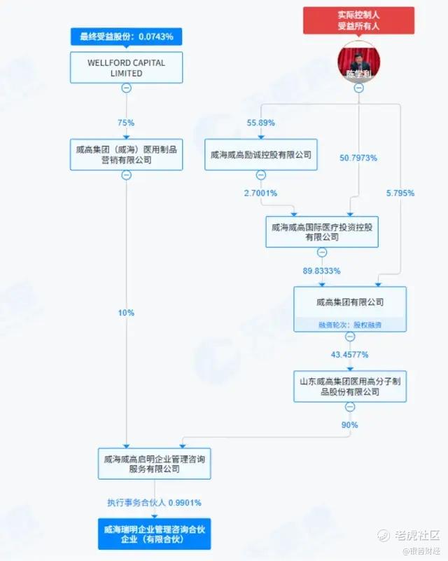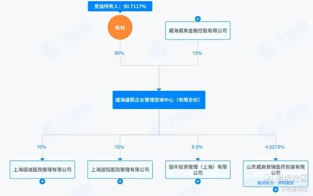 且天眼查显示,威海盛熙的另一合伙人为陈林,是威高集团的股东之一,直接持有威高集团0.81%的股份;威海瑞明的最终受益人为陈学利,是威高集团实控人,直接持有其5.80%的股份,同时还是威高血净的实控人,合计控制威高血净83.70%的股份。
