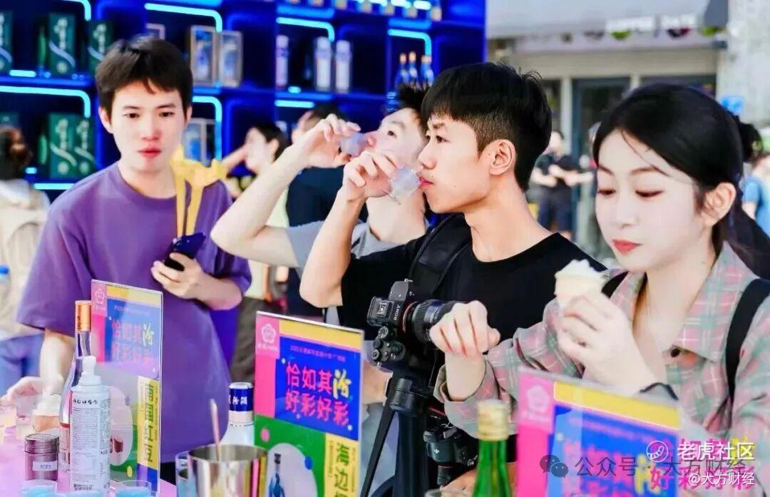 在产品层面,汾酒推出小瓶装、果味特调等年轻化产品,满足年轻人“小酌”“尝鲜”的需求;在渠道层面,进驻小红书、抖音等社交平台,开设线上“汾酒体验馆”,让年轻人足不出户就能了解品牌;营销层面,连续三年举办 #大家都爱汾酒# 抖音挑战赛,吸引超千万用户参与,话题播放量突破20亿次;体验层面,打造“汾・动 24H”快闪活动,走进全国多个高校、商圈,通过互动游戏、文创展示等形式,拉近与年轻人的距离;文化层面,推出萌趣的“汾酒宝宝”形象,将传统元素与卡通风格结合,成为年轻人喜爱的“品牌IP”。