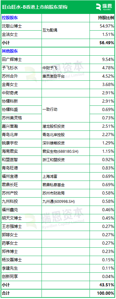 招股书显示,旺山旺水生物医药在上市前的股东架构中,