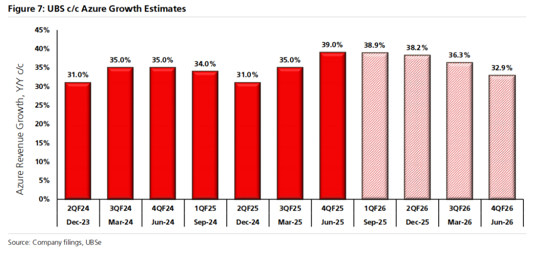 正如我们所指出的,自7月初进行上一轮调研以来,核心云基础设施服务的需求趋势已呈现回升态势,尤其是GPU计算的需求表现尤为突出。基于此,我们将Azure的同比增长估算从38%上调至39%。