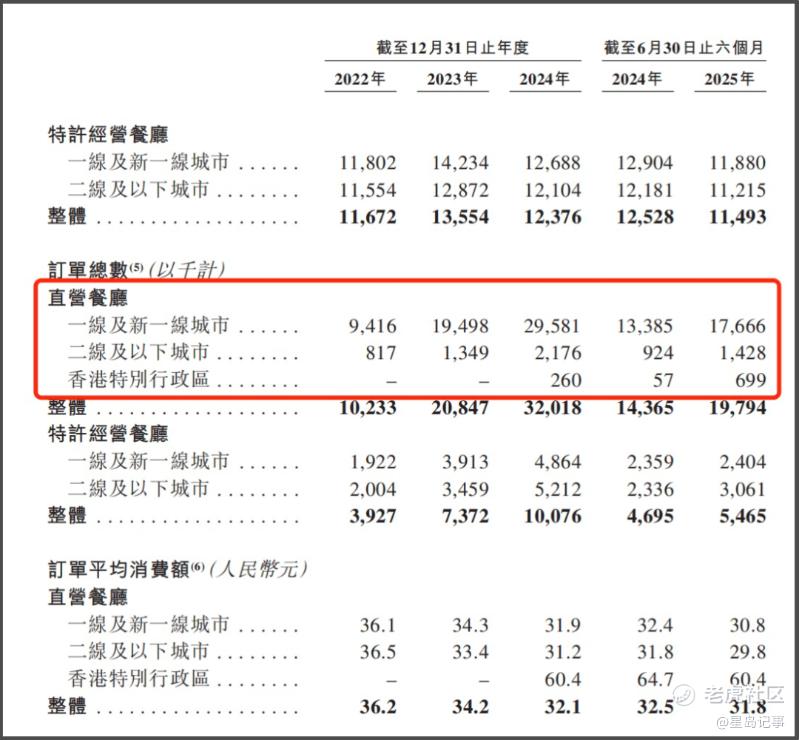 值得注意的是,2025年上半年,遇见小面直营餐厅一线及新一线城市订单总数约为0.18亿单,同比增长38.46%;但2025年上半年遇见小面直营门店单店日均销售额约为1.12万元,较2024年同期的1.24万元,反而减少了约11.02%。
