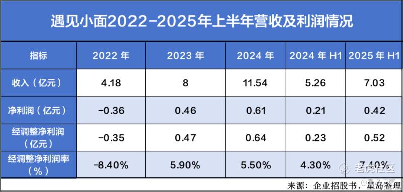 2022—2024年,遇见小面总收入分别约为4.18亿元、8亿元、11.54亿元,年复合增长率达66.2%,2025年上半年其营收同比再度增长33.8%至7.03亿元。