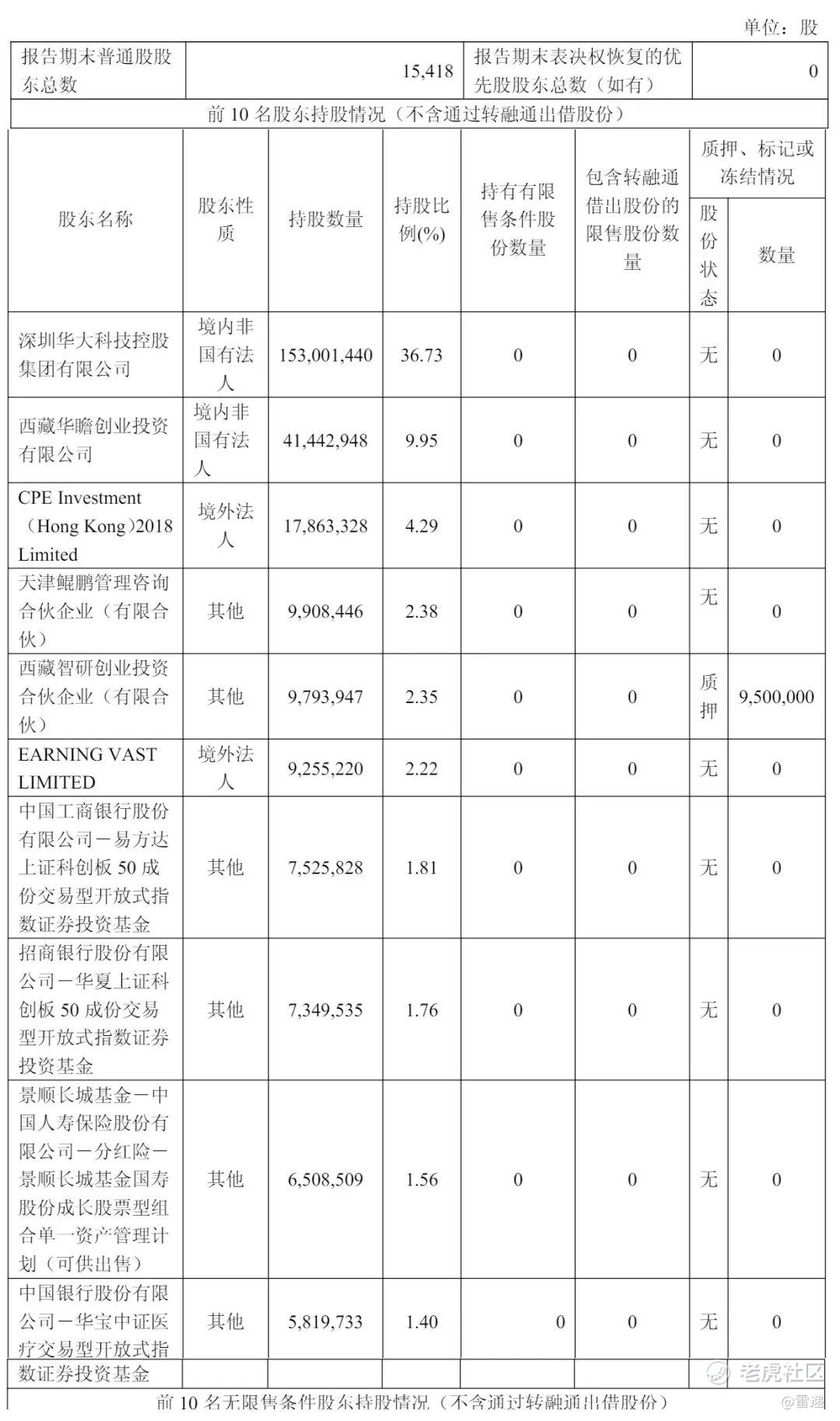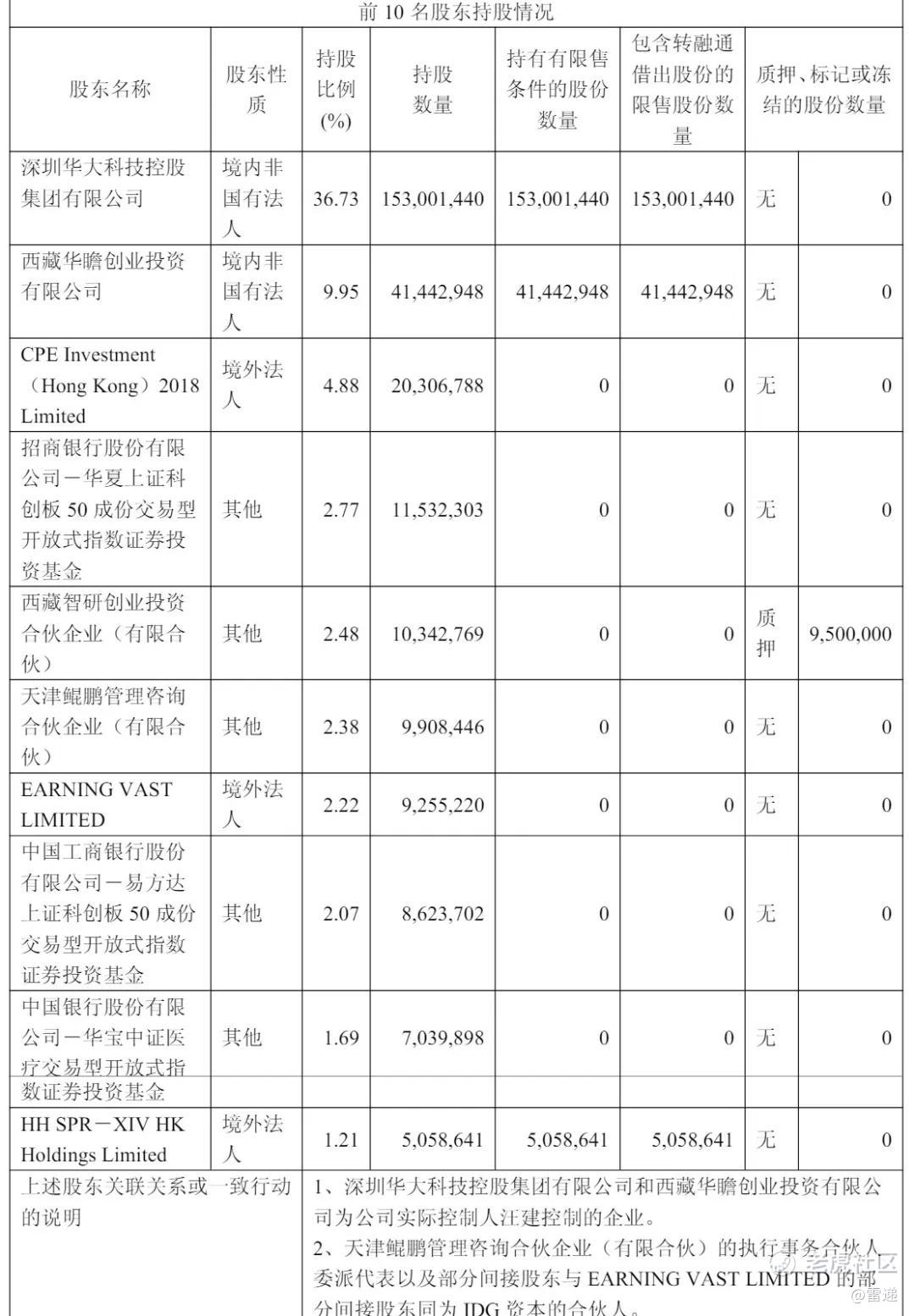 西藏智研创业投资合伙企业(有限合伙)持股为2.48%,天津鲲鹏管理咨询合伙企业(有限合伙)持股为2.38%,EARNING VAST持股为2.22%,中国工商银行股份有限公司-易方达上证科创板 50 成份交易型开放式指数证券投资基金持股为2.07%;
