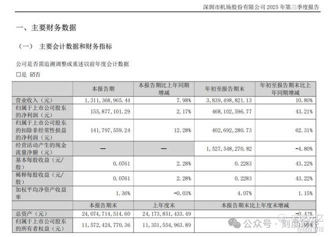在民航业复苏与大湾区竞争的双重背景下,深圳机场的三季报表现更显压力。