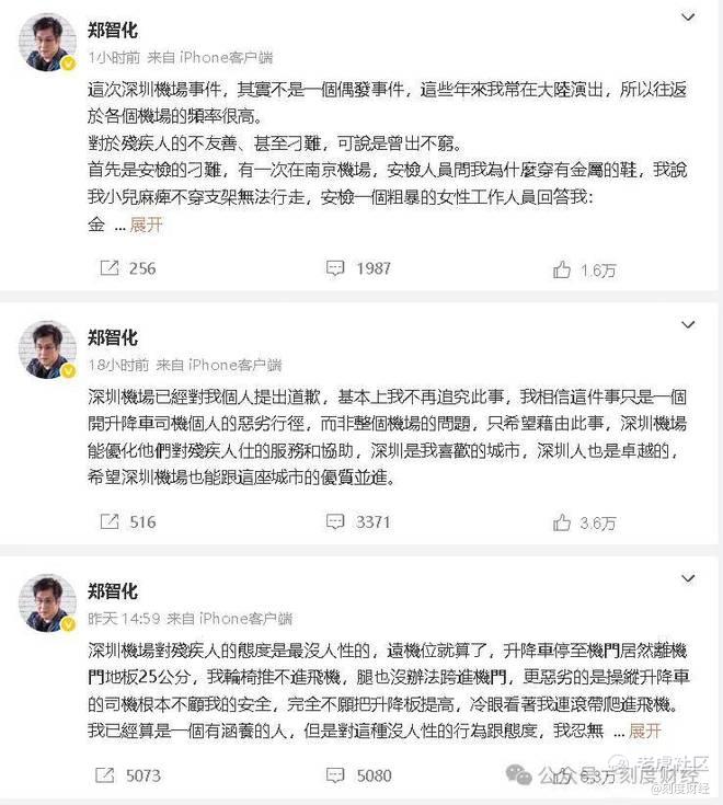 深圳机场三季度财报发布当日,郑智化吐槽无障碍服务引关注