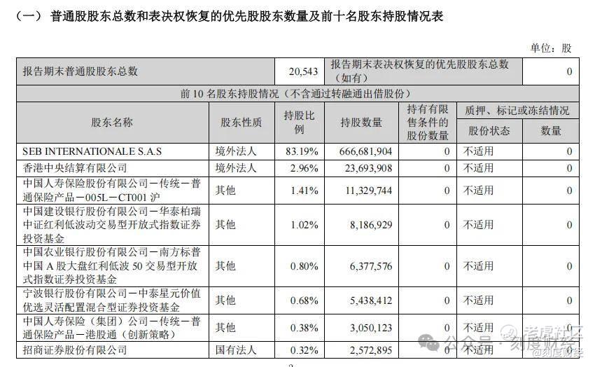 这家成立于1994年的杭州企业,曾是中国炊具行业首家上市公司。其发展轨迹在2006年引入法国SEB集团作为战略投资者后发生转变。通过后续的股权合作与业务协同,SEB的持股比例逐步提升,目前已超八成,苏泊尔也早已成为外资控股企业。