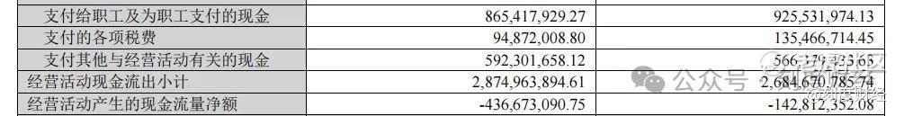 更值得警惕的是,现金流与利润的“反向走势”,直接暴露业务盈利的纸面化问题。前三季度净利润同比减亏82.78%,但经营活动现金流净额却从上年同期的-1.43亿元恶化至-4.37亿元,降幅达205.77%,其中支出端,同比增加25.07%至13.22亿元。