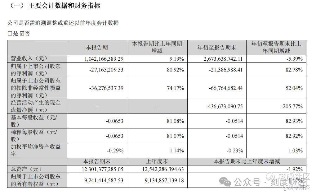 其中,第三季度,公司实现营业收入10.42亿元,同比增长9.19%;归母净利润亏损2716.52万元,同比增长80.92%。