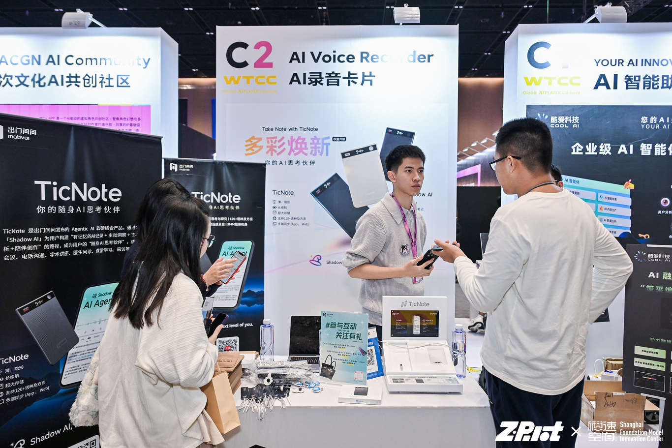 WTCC作为科技与消费融合的行业盛会,汇聚了众多创新型科技企业及智能产品。出门问问凭借多年来在语音交互和生成式AI领域的技术积累,持续推动AI技术在智能硬件中的落地应用。其中,TicNote搭载全新升级的「Shadow AI 2.0」为用户构建“有记忆的AI记录+主动洞察 +主动分析+陪伴创作”的路径,成为用户的随身AI思考伙伴”,适用于会议、电话沟通、商务会议、学术讲座、医生问诊、课堂学习、采访沟通等场景。