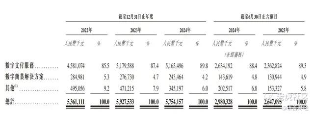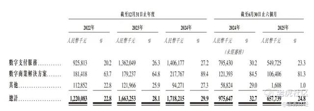 不过,从毛利率情况来看,贡献绝大部分营收的数字支付服务的毛利率水平却不如数字商业解决方案。2022-2024年、2025H1,数字支付服务毛利率仅为20.2%、26.3%、27.2%和23.3%;数字商业解决方案则高达63.7%、64.8%、89.4%和81.3%,且呈上涨趋势。