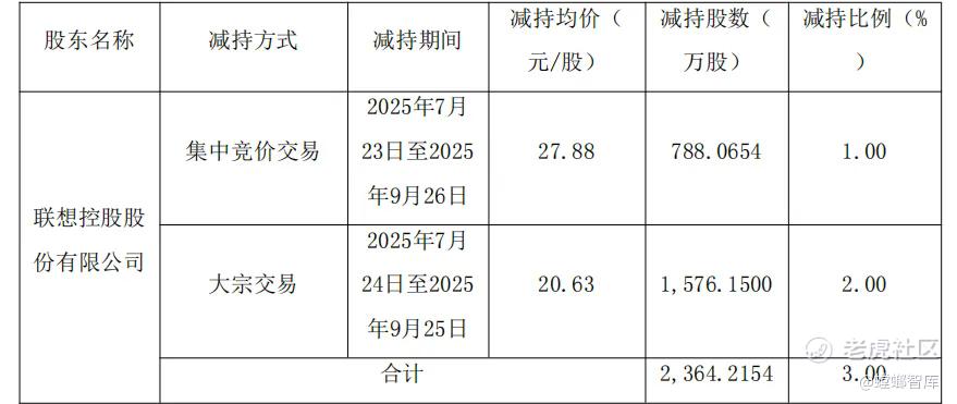 联想一口气减持逾2300万股