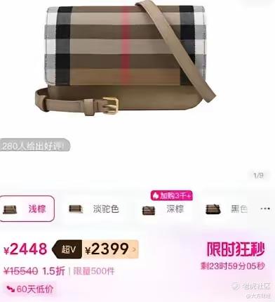 巴宝莉这一顶奢同样典型,经典的肯辛顿风衣红极一时,现在在Costco被卖出了打折价。还有它家的包,在唯品会更是出现了地板价。今年这一特卖平台,推出了多轮奢侈品折扣活动,这一品牌的包袋就时常拿下2-3折的惊喜折扣。上半年就幸运地捡到了漏,一只Burberry单肩包,专柜价16000,唯品会竟然只卖2399,当时立刻激情下单,省下了一万三千多。