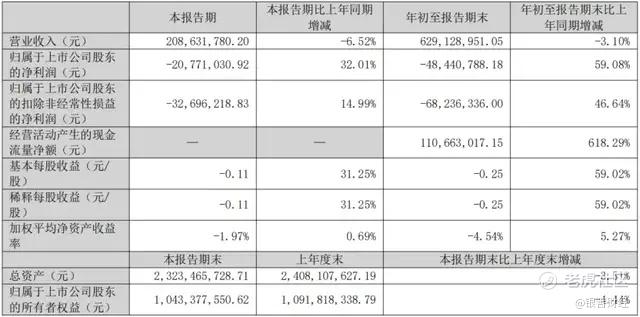 其中,Q3营收为2.09亿元,同比下降6.52%;净利润亏损2077.1万元,同比增长32.01%。