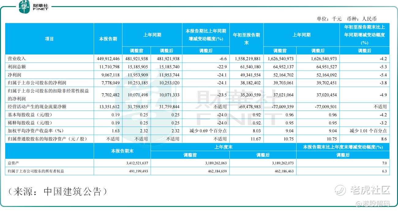 10月31日截至发稿,A股 $中国建筑(601668)$ 股价亦下挫3.89%。