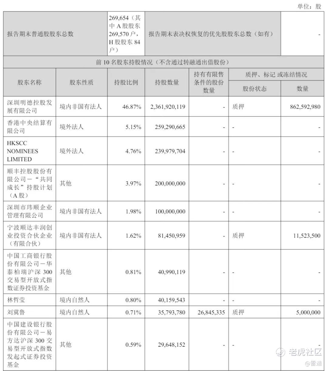 另一个变化是,明德控股持股比例减少,原因是,2025年8月,顺丰控股称,持股计划股票来源为明德控股自愿赠与,涉及到的公司股份数量合计不超过20,000万股A股股份,约占公司当前总股本的4%。