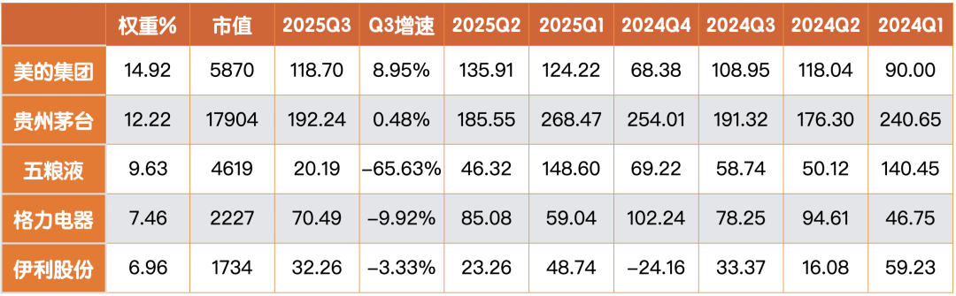 五大权重股2025年第三季度合计归母净利润433.88亿元,同比下降36.75亿,同比下降7.81%,前三季度合计归母净利润1559亿元,同比增长56.14亿,同比增长3.74%。50家成分股前三季度合计归母净利润2637.7亿,同比增长19.82%。