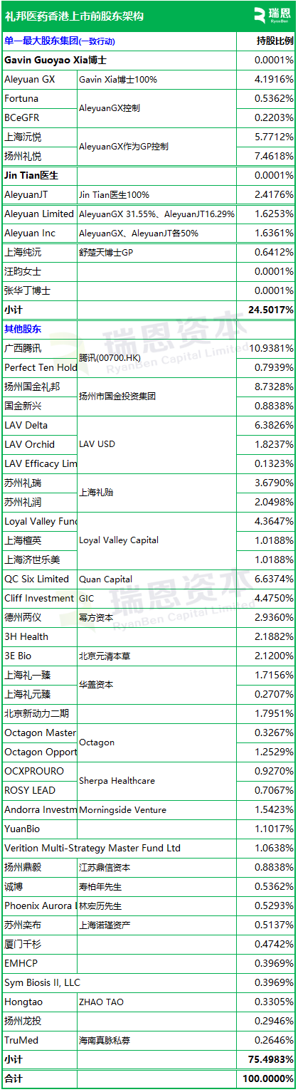 招股书显示,礼邦医药在香港上市前的股东架构中,