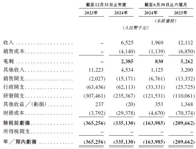 招股书显示,在过去的2023年、2024年和2025年前六个月,礼邦医药的营业收入分别人民币0元、652.5万和1,211.2万元,相应的研发开支分别为人民币3.07亿、2.35亿、和1.10亿元,相应的净亏损分别为人民币3.65亿、3.35亿、和2.10亿元。