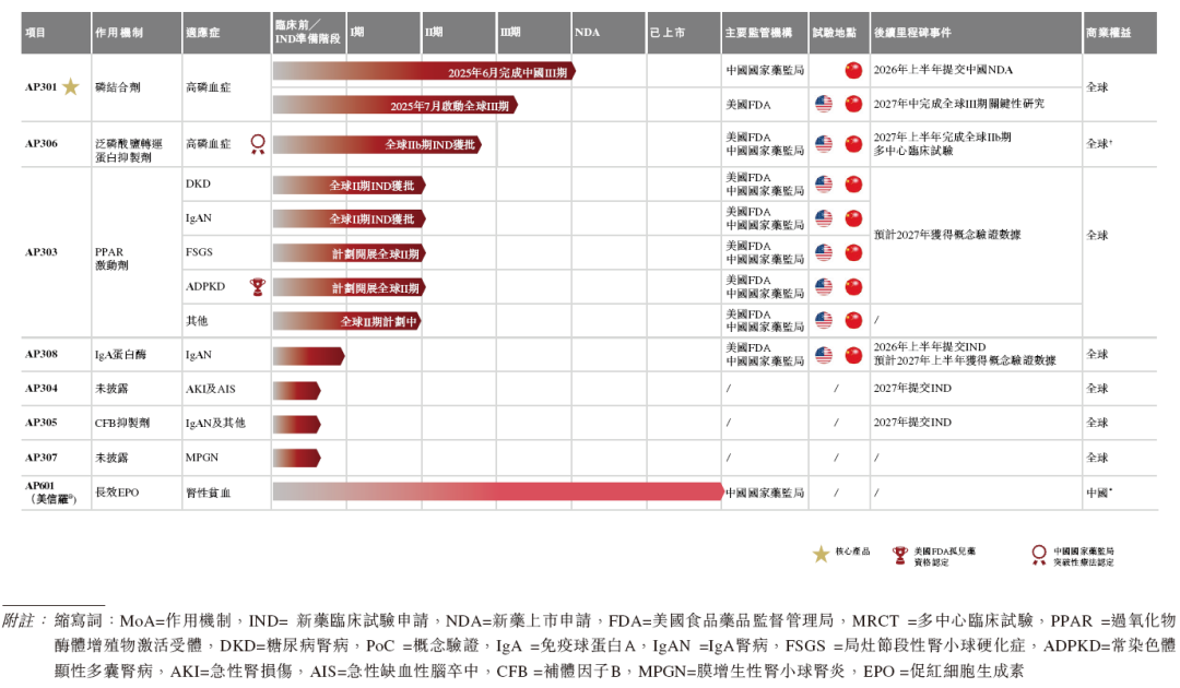 AP303是一款潜在FIC的疾病修正产品,用于推迟或阻止CKD进展,已获得FDA针对常染色体显性多囊肾病(ADPKD)的孤儿药资格认定(ODD)。