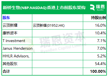 招股书显示,新桥生物在香港上市前的股东架构中,