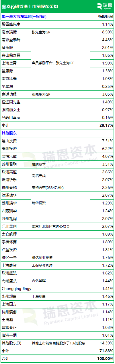 招股书显示,鼎泰药研在香港上市前的股东架构中,
