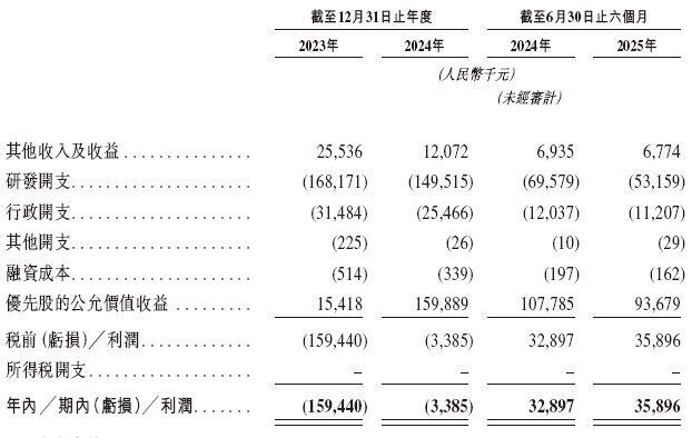 招股书显示,在过去的2023年、2024年和2025年前六个月,麓鹏制药未有营业收入,相应的研发开支分别为人民币1.68亿、1.50亿、0.70亿和0.53亿元,相应的净亏损分别为人民币1.59亿、0.034亿、0.33亿和0.36亿元。
