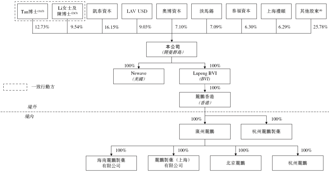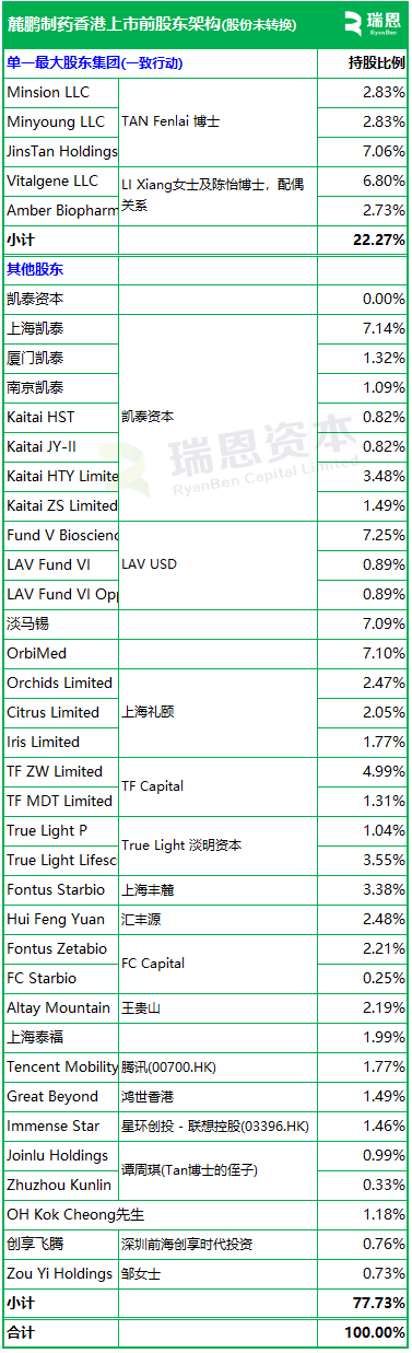 招股书显示,麓鹏制药在香港上市前的股东架构中,