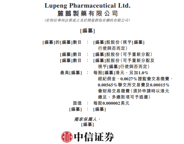麓鹏制药-B,递交招股书,拟赴香港上市 | 医疗健康企业.IPO上市