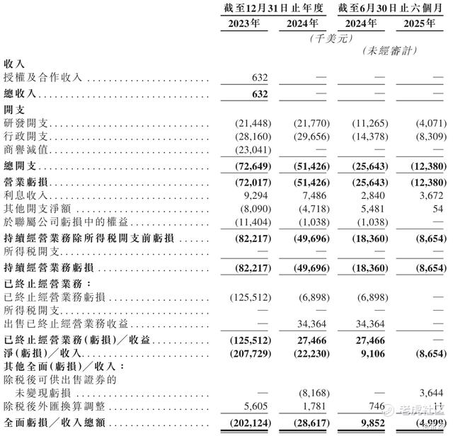新桥生物2025年上半年总开支为1238万美元,运营亏损为1238万美元,净亏损为865万美元。