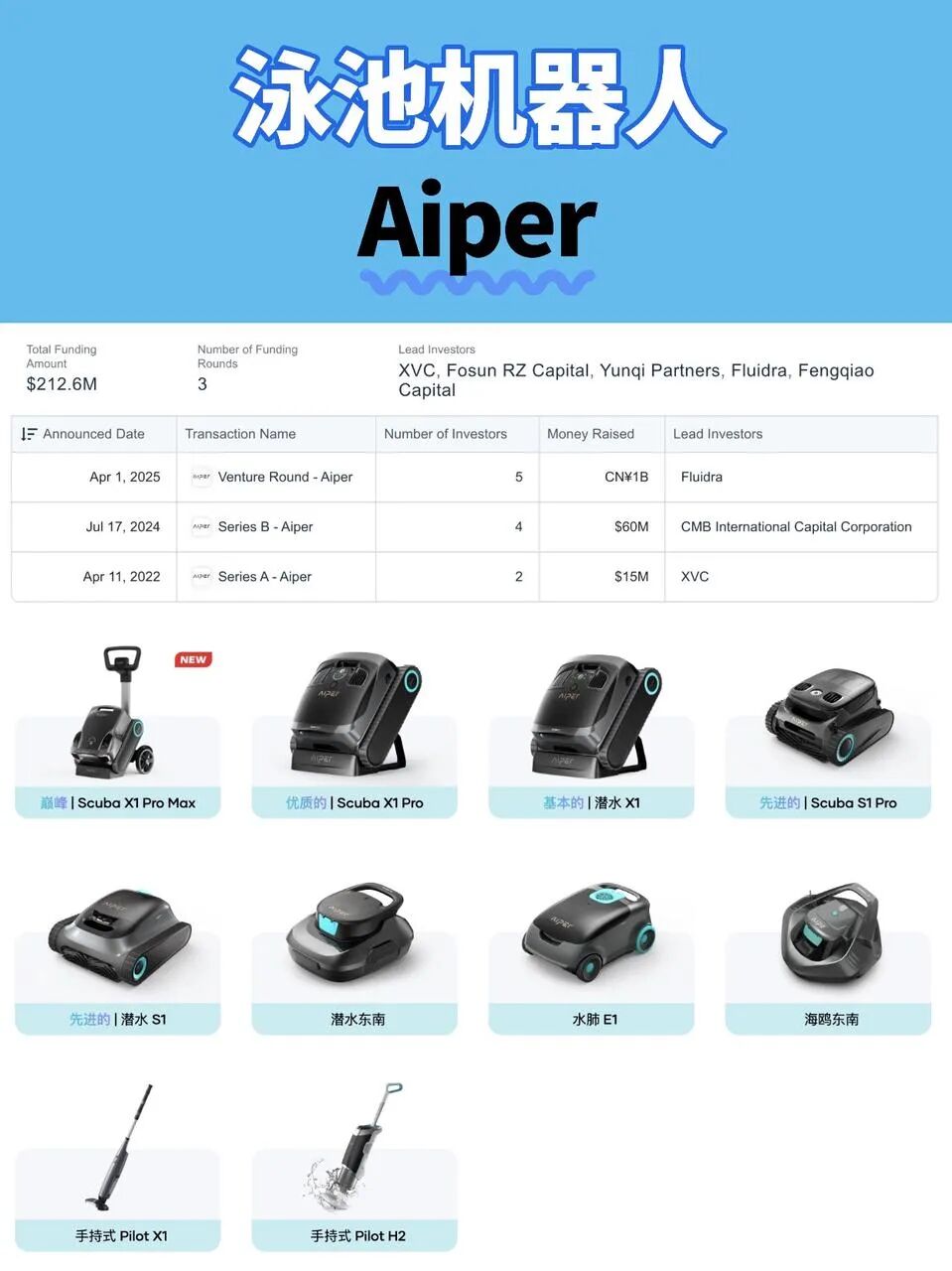 Aiper与泳池设备巨头 Fluidra 在 2025 年4 月完成战略投资,后者获得 Aiper 约 27% 股权,双方将在渠道、产品与全球扩张方面协作。