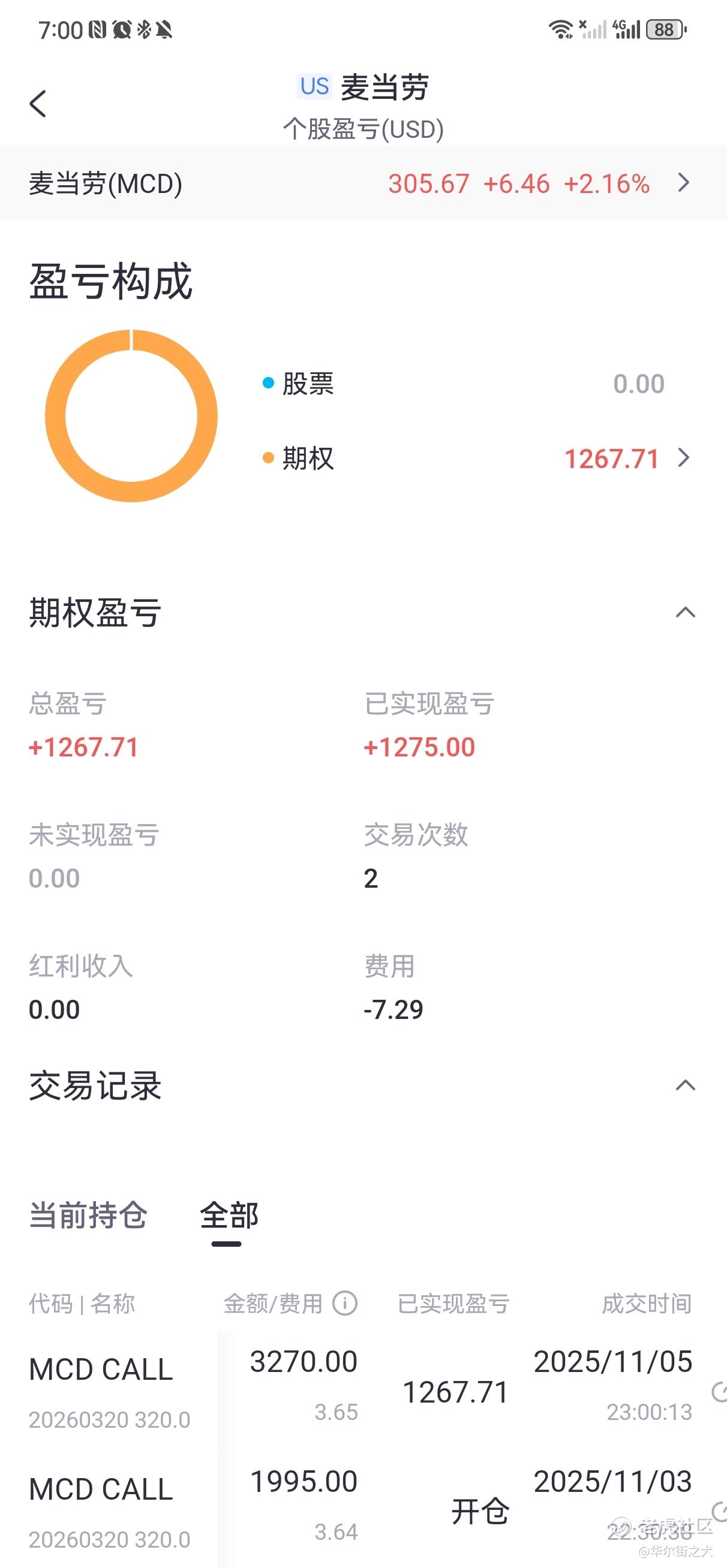 感谢麦当劳,小试3张call,持仓2天收益64%,圆满止盈,祝好。