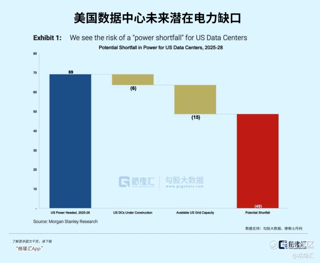 大摩近期研究显示,2025至2028年,美国数据中心潜在电力缺口将达到惊人的49GW。