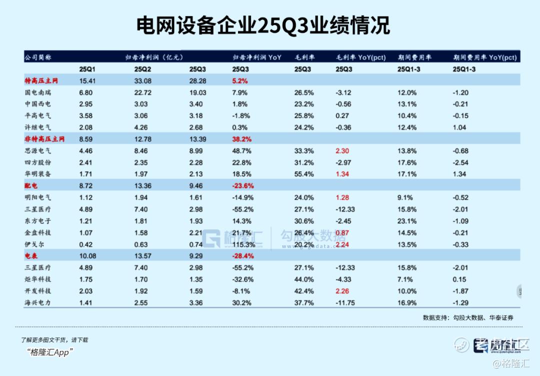 从行业景气度来看,非特高压主网板块业绩表现出色,三季度归母净利润增速高达38.2%,主要是因为该赛道出海需求大,网内主网建设需求持续性也比较高。