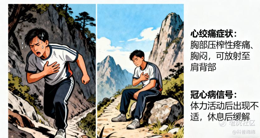 心绞痛:活动时出现胸痛或胸部压迫感,休息后缓解,可能是冠心病的信号。