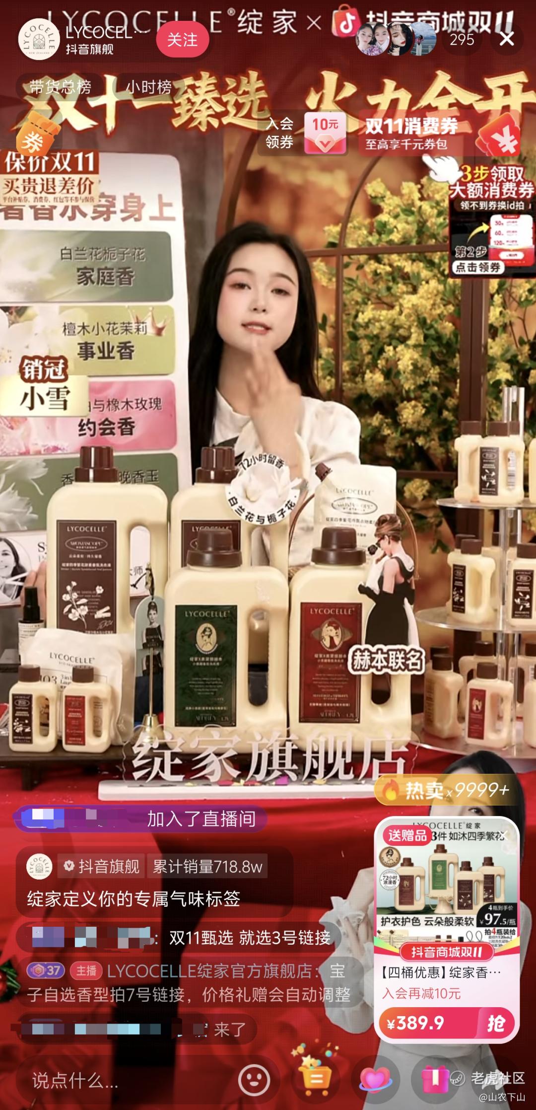 今年抖音电商双11大促期间,绽家抖音官方旗舰店的业绩创下了新高,单场GMV相比平时实现翻倍。