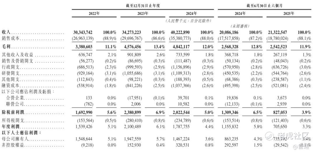 招股书显示,中伟新材2022年、2023年、2024年营收分别为303.44亿元、342.73亿元、402亿元;毛利分别为33.8亿元、45.76亿元、48.42亿元;毛利率分别为11.1%、13.4%、12%;年度利润分别为15.39亿元、21亿元、17.88亿元;年度利润率分别为5.1%、6.1%、4.4%。