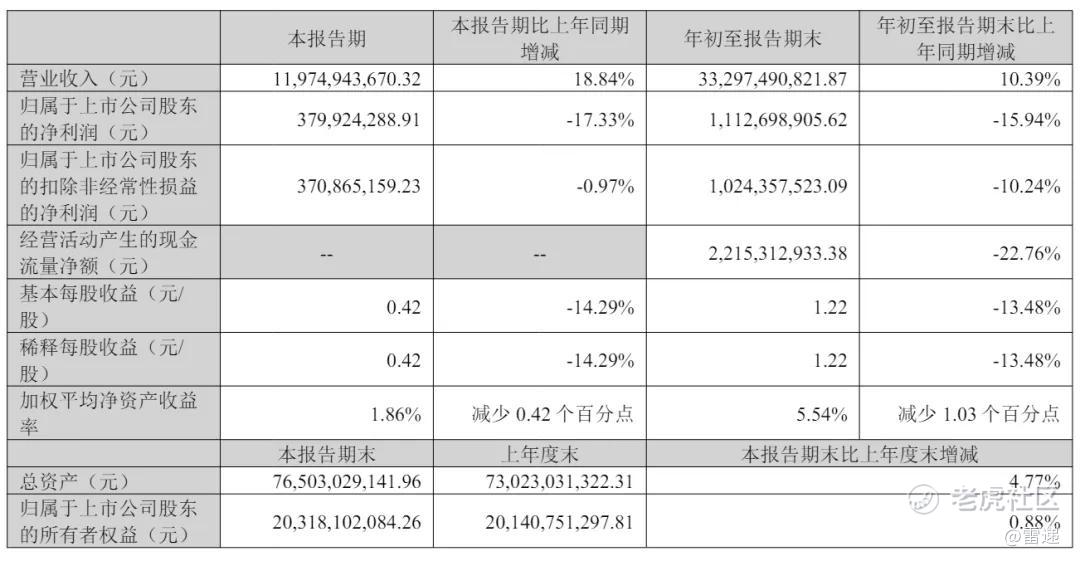 前9个月营收333亿 扣非后净利同比降10%