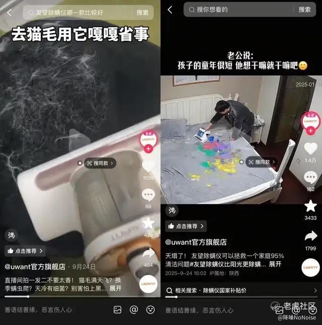▲友望除螨仪的抖音宣传视频聚焦在养宠、有娃用户需求痛点